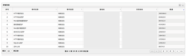 经过BDS平台攻击源的统计发现主要来源于一个公网IP,类型包括各种web和网络攻击,验证攻击已经穿透WAF到达FW,但因没有接入服务器中间件日志,BDS平台无法感知服务器是否有异常。