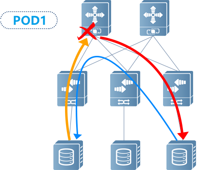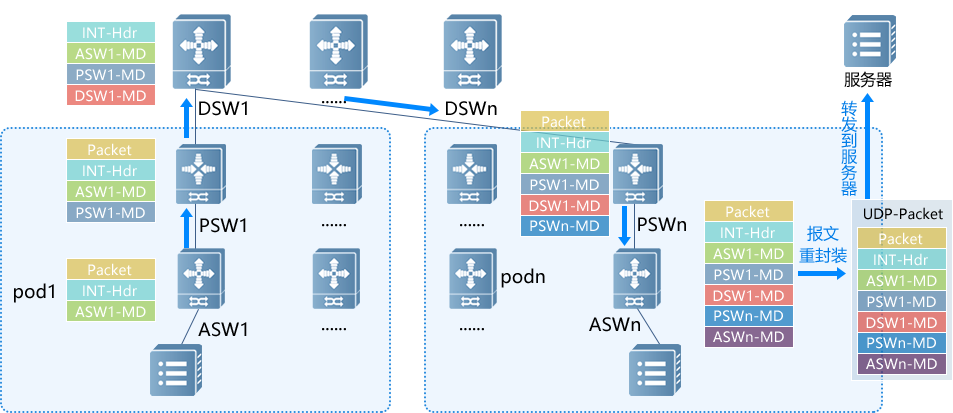 • 源服务器发送报文给目标服务器,途径拥塞的汇聚交换机