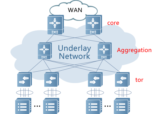 基于RG-S6510系列交换机架设的基础网络,可以在不改变物理拓扑的情况下,基于Overlay划分新的子网,无需考虑物理网络IP地址和广播域的限制。