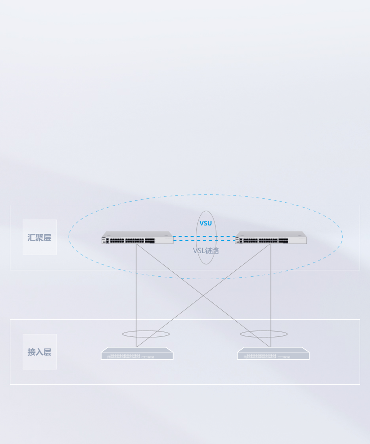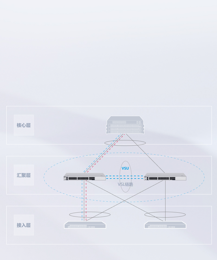VSU和外围设备通过聚合链路连接如遇故障,可毫秒级切换链路,保证网络不间断