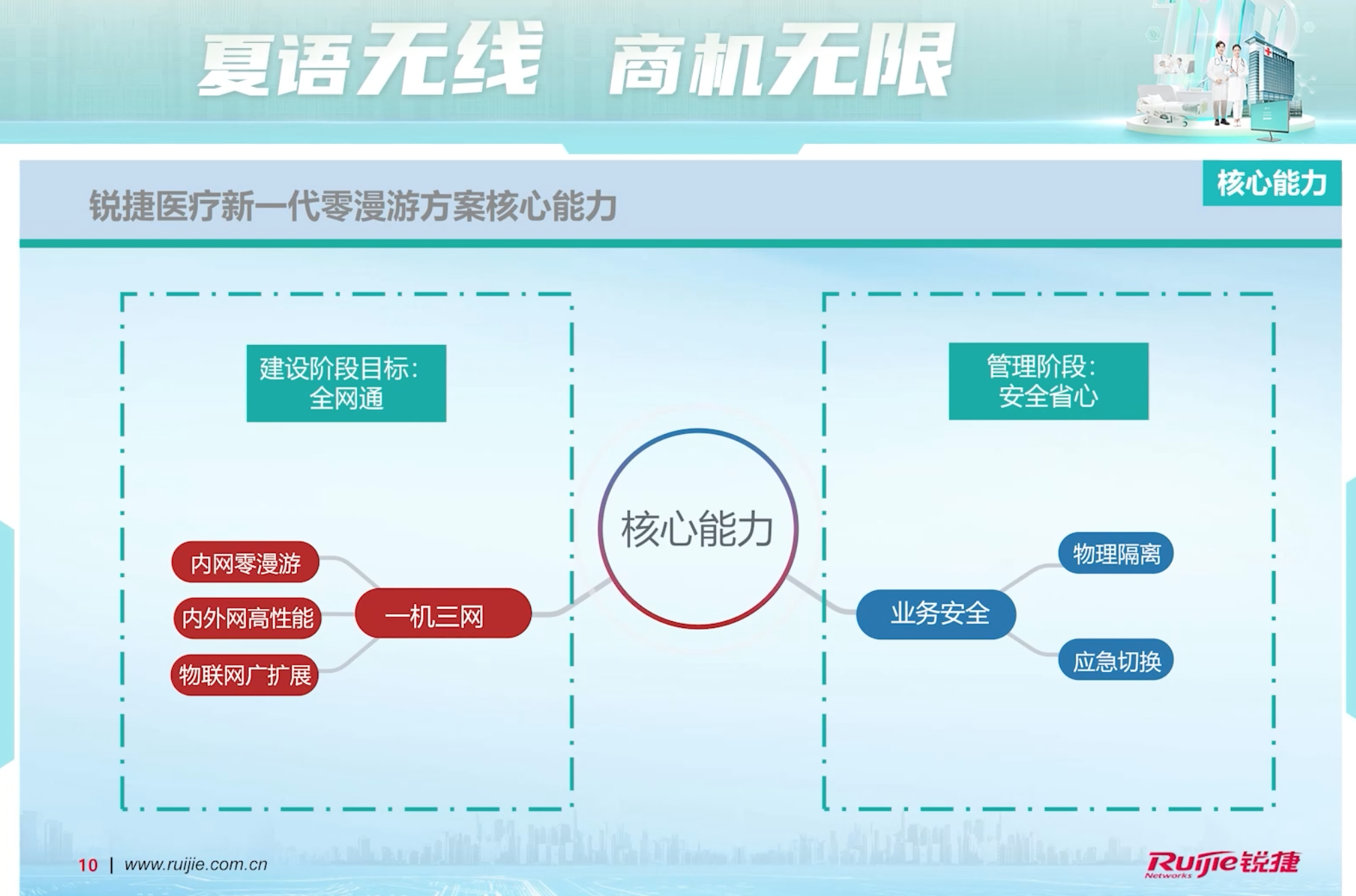 高速稳定的无线网络,以及智能灵活的物联网是业务稳步发展的基石。但在物联网建设应用过程中,因为技术限制等诸多原因,单一品牌的物联终端厂商难以做到医疗业务全支持,仍然需要无线网络承载业务保障;另一方面,引入每个物联网终端品牌,原则上又需要新建一套接入传输网络。因此,物联网在建设过程、后期应用以及未来物联终端的扩展方面,都会存在一些规划盲区或应用管理障碍。