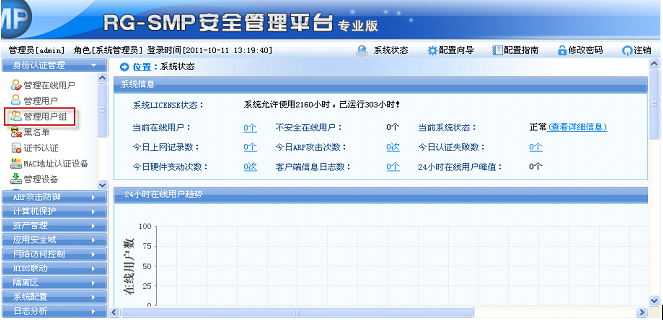 1)首先登录到SMP管理界面,依次打开“身份认证管理”-“管理用户组”,找到认证失败用户所在的用户组点击修改,在接入方式控制标签查看认证失败用户所在用户组是否开启了网络信息校验功能: