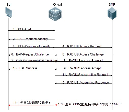 2.  SMP的802.1x认证流程如图所示,共分为两个部分: