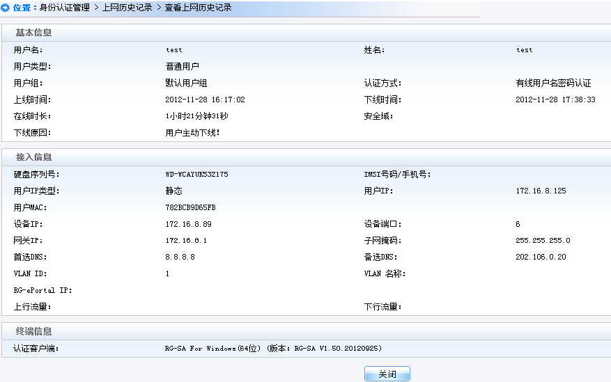 如果在认证时客户端提示“您已被禁止使用网络”,请确认用户是否被加入到黑名单中。