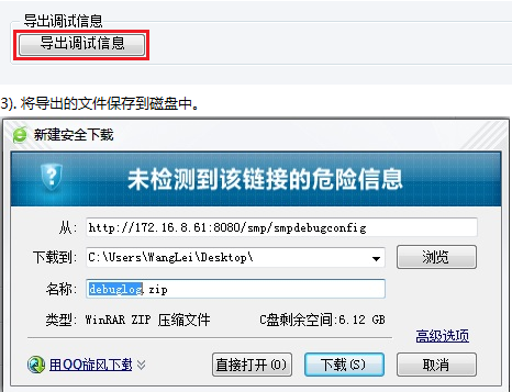 2). 重新登录客户端进行至少三次的认证操作,然后再次登录debugtool界面,点击下方的“导出调试信息”按钮。