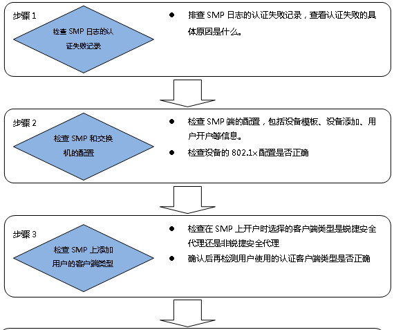 1)客户端和认证设备、认证设备和SMP服务器之间的通信异常;