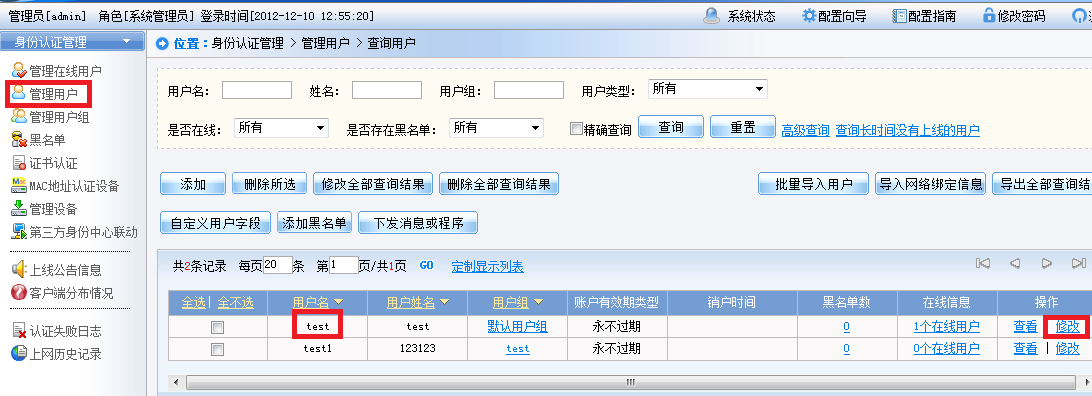 2.  当怀疑用户被加入黑名单导致认证失败时,按如下步骤处理: