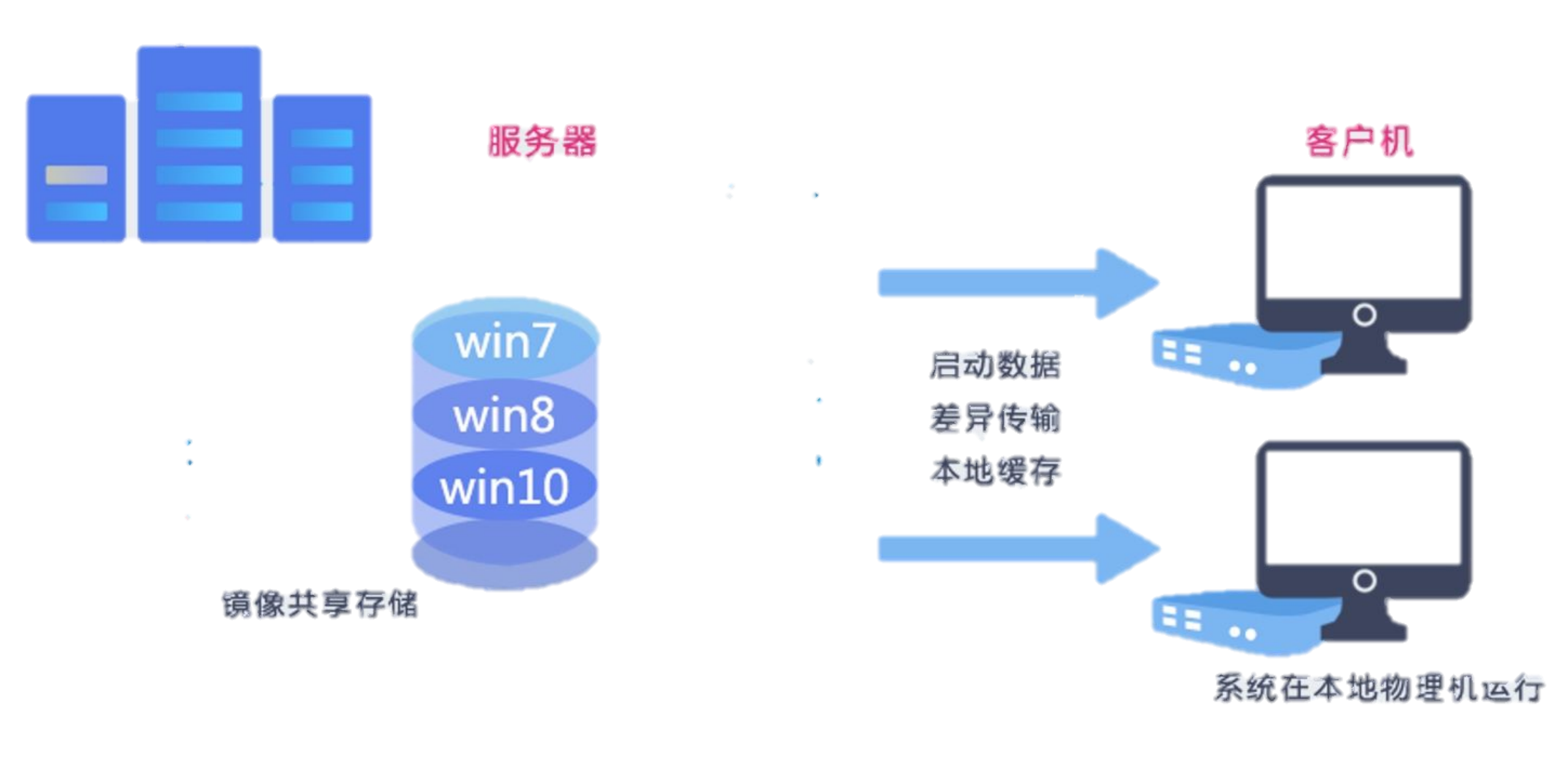 相比IDV,TCI采用的是非虚拟化的架构,在引导阶段,通过基于UEFI的TCI引导器进行引导,在TCI引导器中,用户可进行账号登录、镜像选择等操作;而当用户选择了操作系统镜像之后,引导器则退出,由操作系统直接对接底层硬件。在保留了“镜像集中制作,远程下发/更新”特性的同时,TCI技术去掉了虚拟化层,从而让用户可100%获得硬件性能,同时对于Intel架构的PC,其兼容性较好,可使用于大部分基于Intel架构的计算机。